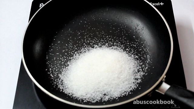 Once all the sugar has melted and appears amber in colour, turn off the heat.